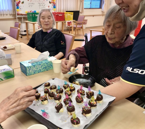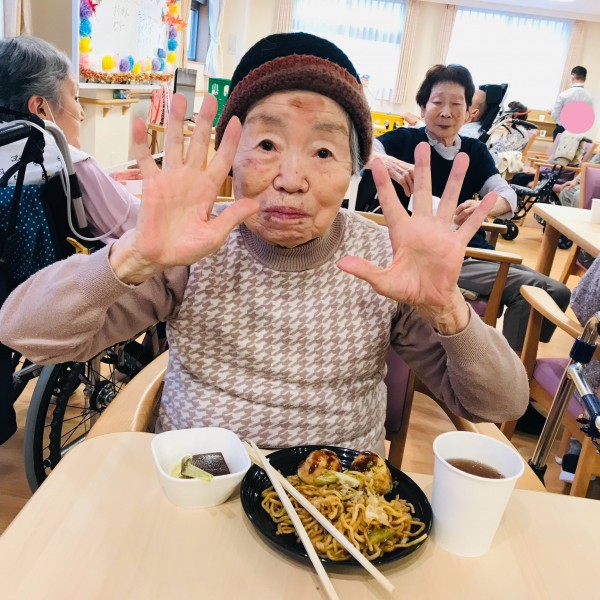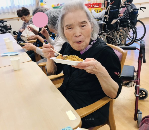 今年の敬老会では、たこ焼き、焼きそば、チョコバナナ、水ようかん、ぶどうゼリーをご用意しました♡