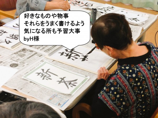 月1回の書道を楽しみにされている方もたくさんおられ、皆様頑張って良い作品を作られていました!