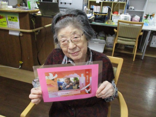 先日、2階フロアで敬老の日の記念で贈らせていただいたメッセージカードを持って記念撮影をしましたので、その時の様子をお伝えします!