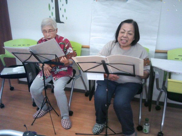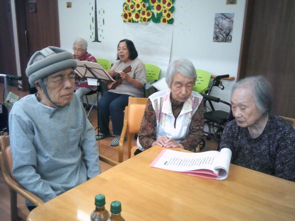 ウクレレ演奏に合わせて歌っています( ^ω^)・・・ 楽しそうに歌いる方や聴いている方や様々です。