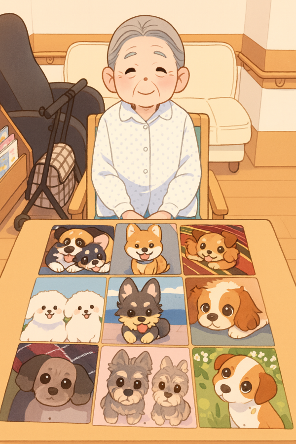 テーブルに並べられた犬のお写真をご覧になられ「みんな可愛いね!」っとお話されるお母様I•͈ ·̭ •͈U