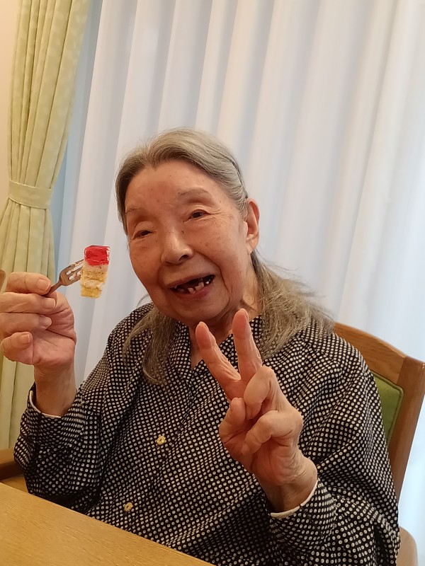 敬老の日をお祝いするのにぴったりなケーキを、おやつの時間にお出しいたしました♪
