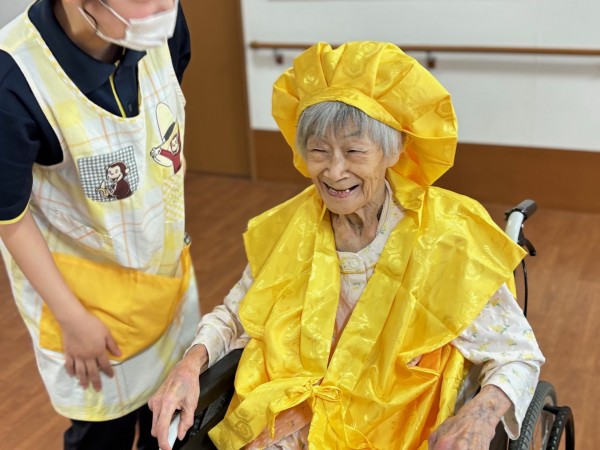 黄色いちゃんちゃんこを着てハイポーズ(^^)v