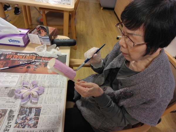 今日はお花づくりをしていきます。まずは色塗りからしていきましょう。