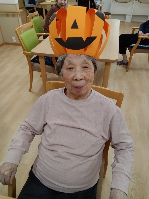 余り入居者様にはなじみの薄いハロウィンですが、スタッフが作った帽子を「被りたい!」と皆様楽しそうに被って下さいました^^