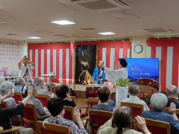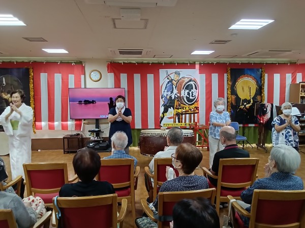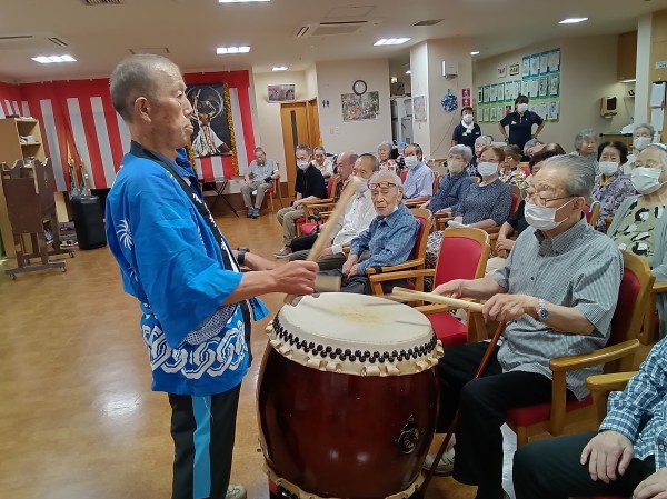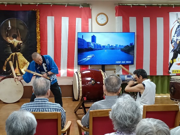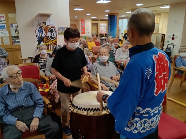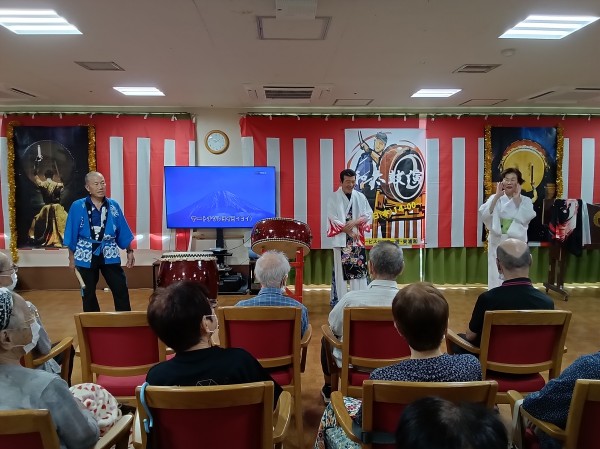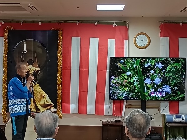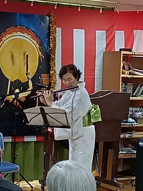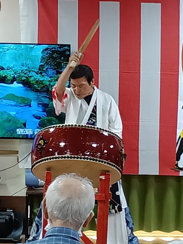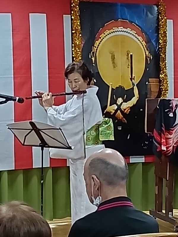 一歩会さんリーダーの横笛演奏に合わせて、和太鼓の小川さんが歌を歌いました♪