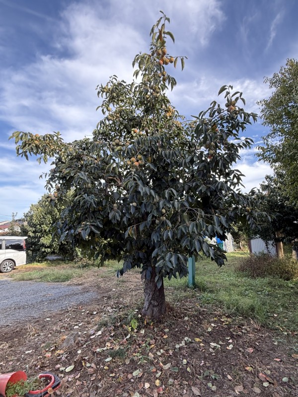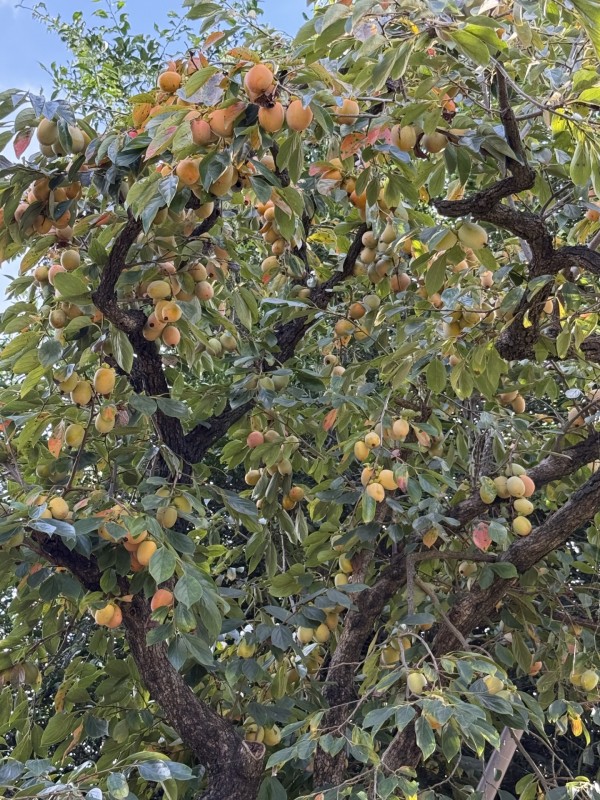 種類の違う柿の木が続けて並んでいて、こちらも枝先に大量に実がなっています!!
