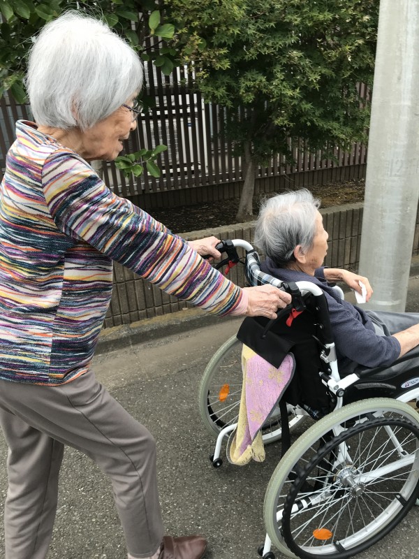 秋晴れの中、利用者様とスタッフ同行でホームの