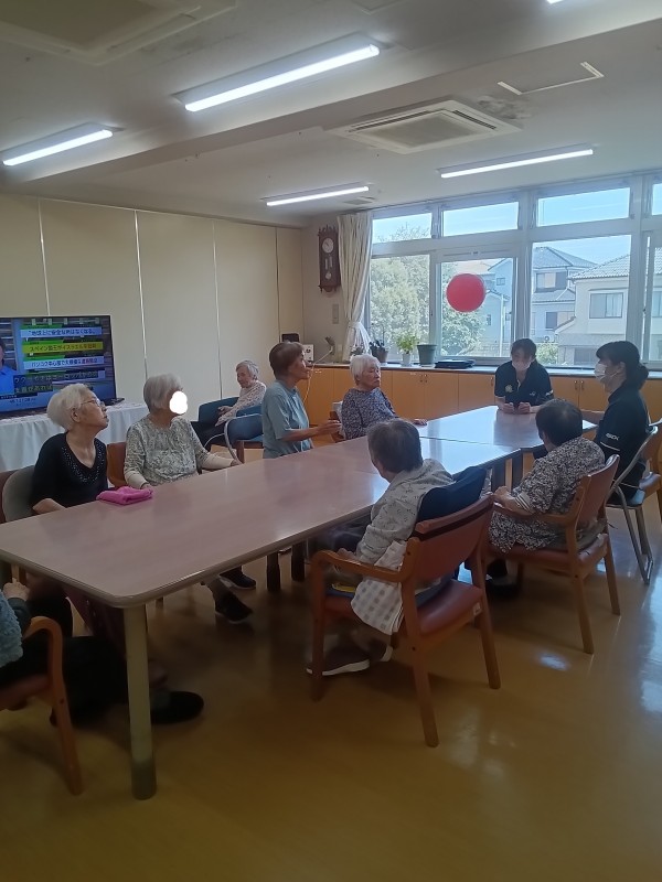 今日はAフロアにBフロアの皆様が集まり一緒に風船バレーを楽しみました(^^♪