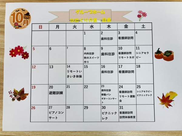 10月の行事予定表が完成しました♬