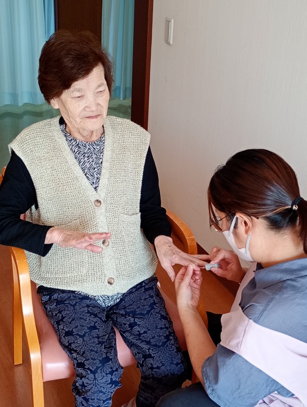 お試しシニアセラピーでネイルをしてもらえて嬉しそう♪♪