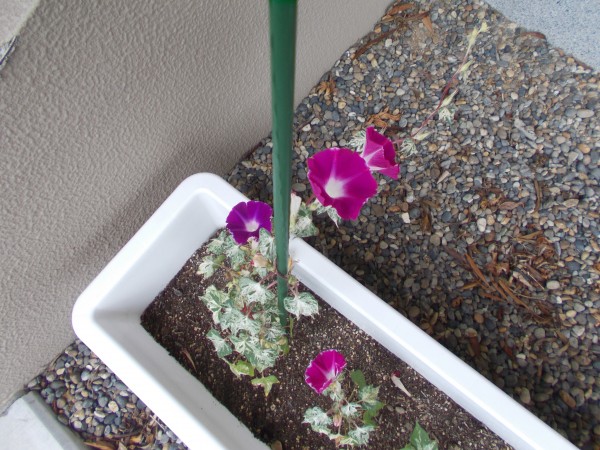 朝顔ですが、ご利用者様の水やりのお手伝い
