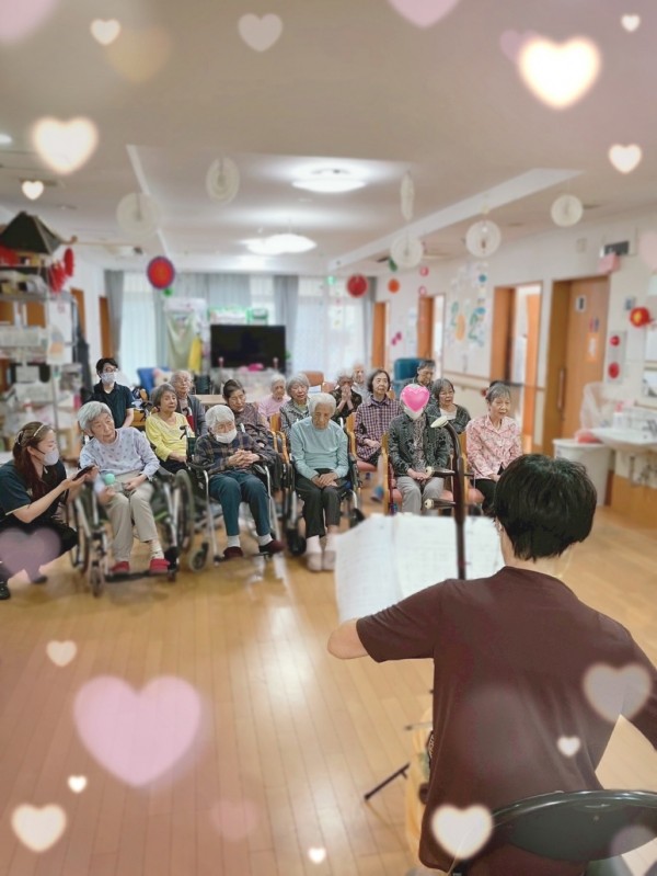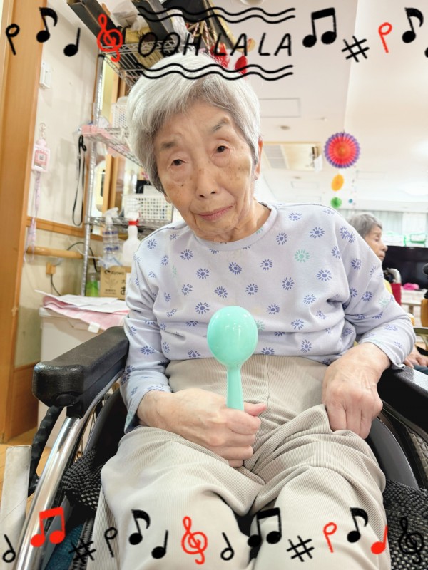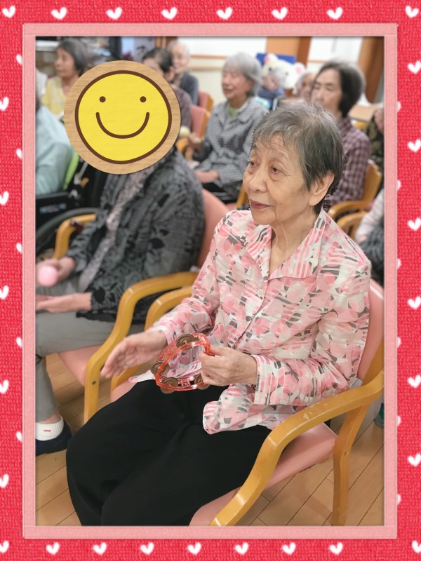 リズミカルな曲になるとタンバリンや鈴やマラカスなどで皆様と曲に合わせて鳴らし盛り上がりました。