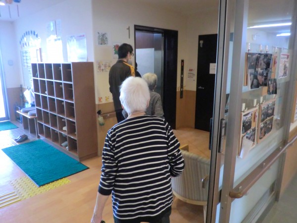 水害想定なので垂直避難の為施設内3階へ皆様を誘導していきます。