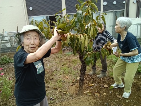 ジャガイモの様子を見にと柿がなっているので行ってみました。