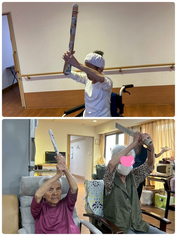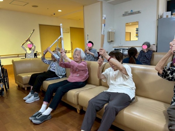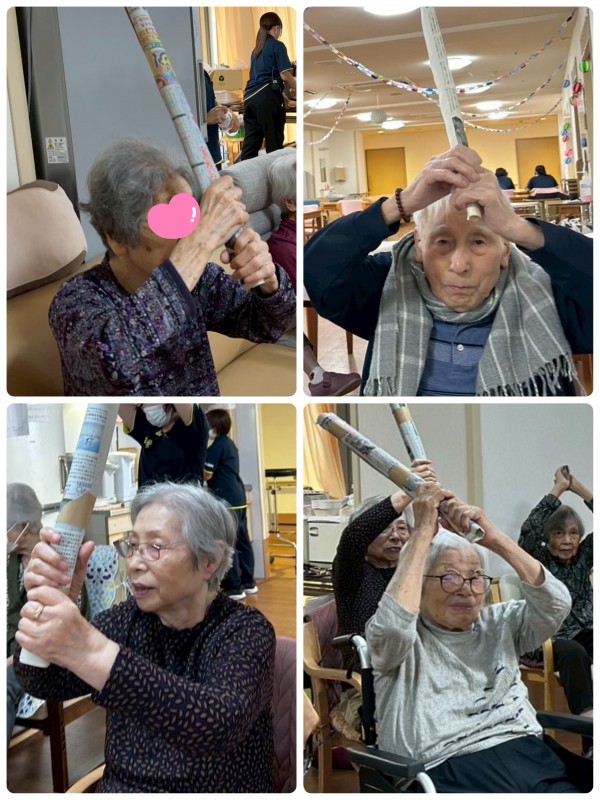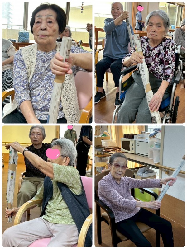 今日の体操は、丸めた新聞紙を持ってやってみます!