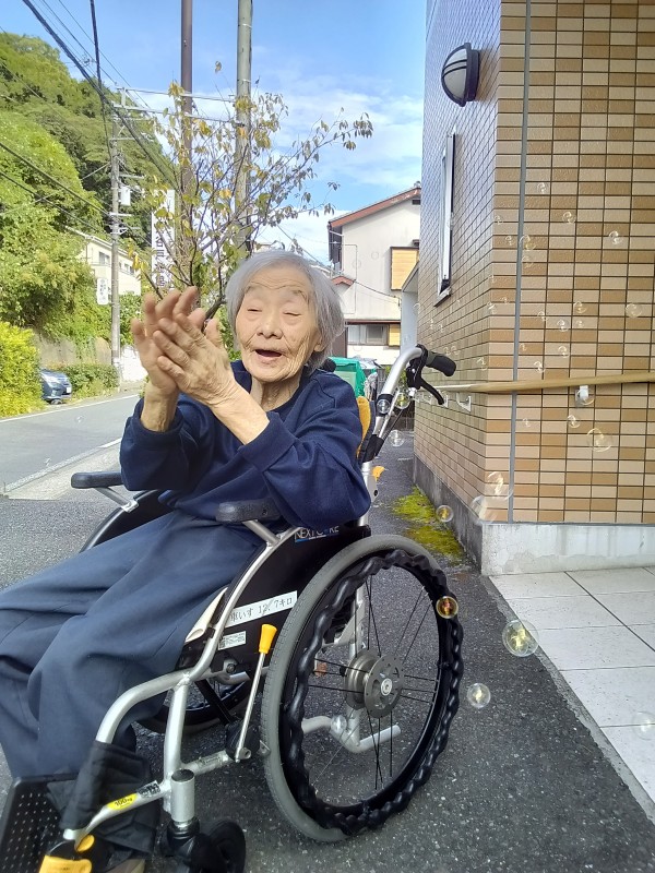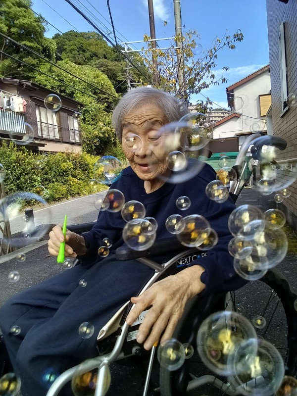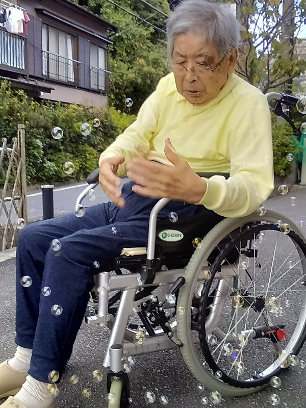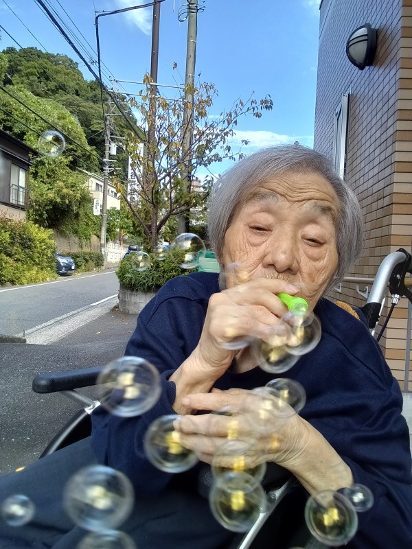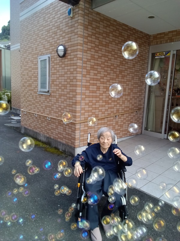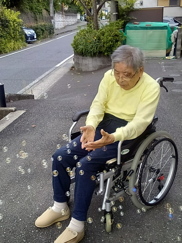 外気浴をかねてお散歩後に昔懐かしの「シャボン玉」