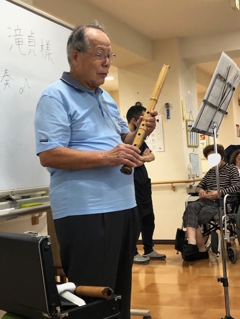 実は尺八演奏のTさんは、わたしがグループホーム横浜綱島の管理者をしていたころからのお付き合いになります。毎月2階、ユニット毎に演奏してくれていました。ヨコハマシボランティア制度の会員様で綱島も登録事業所でした!(・ω・)やったね!今回は初めてということで緊張していました今までは9名の前での演奏ですが