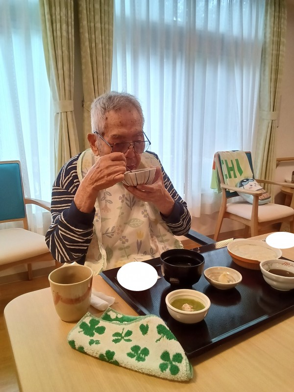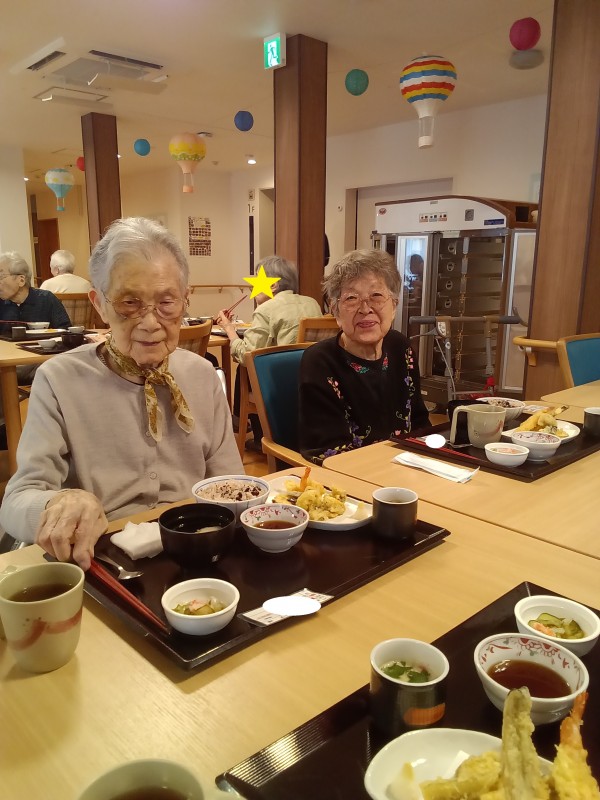 笑顔溢れる食事風景です。これからも、皆様が安心して笑顔でお過ごしいただけますよう、職員一同、心を込めてお手伝いしてまいります。これからも健やかに、穏やかに毎日をお過ごしください。