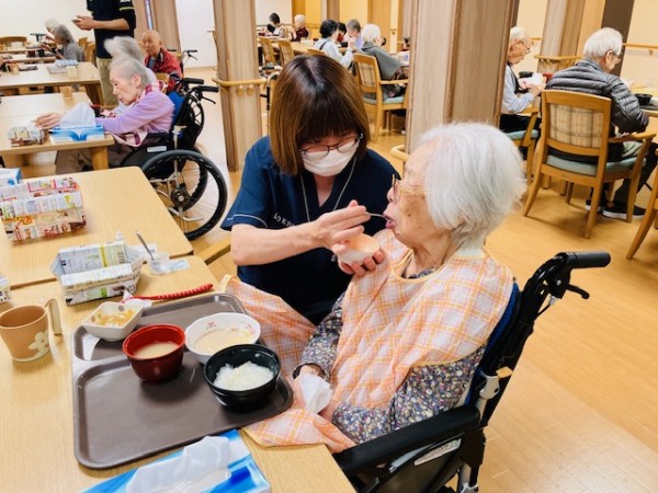 介護施設の看護業務は幅広いのですが、本日は食事介助の一コマをご紹介します。