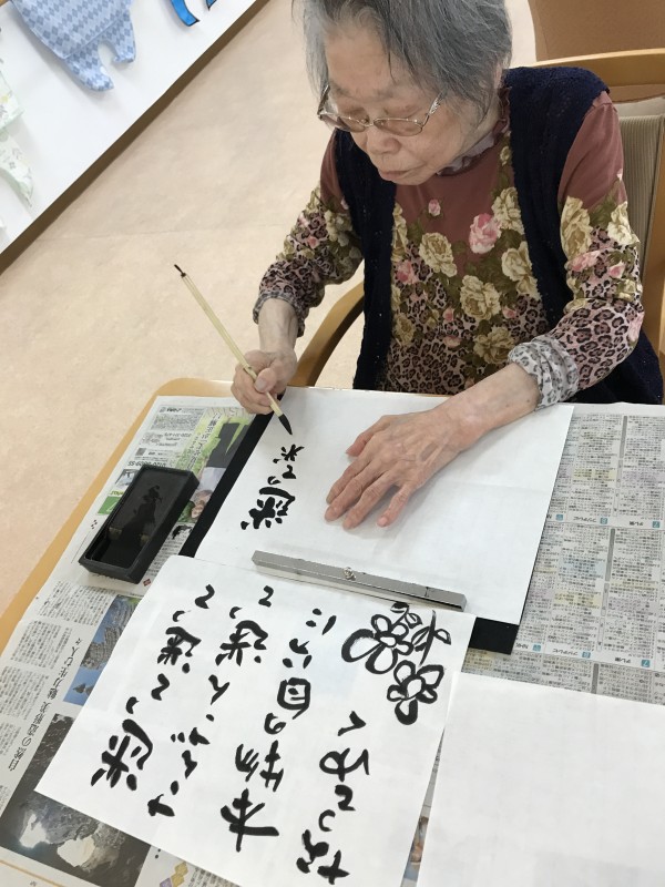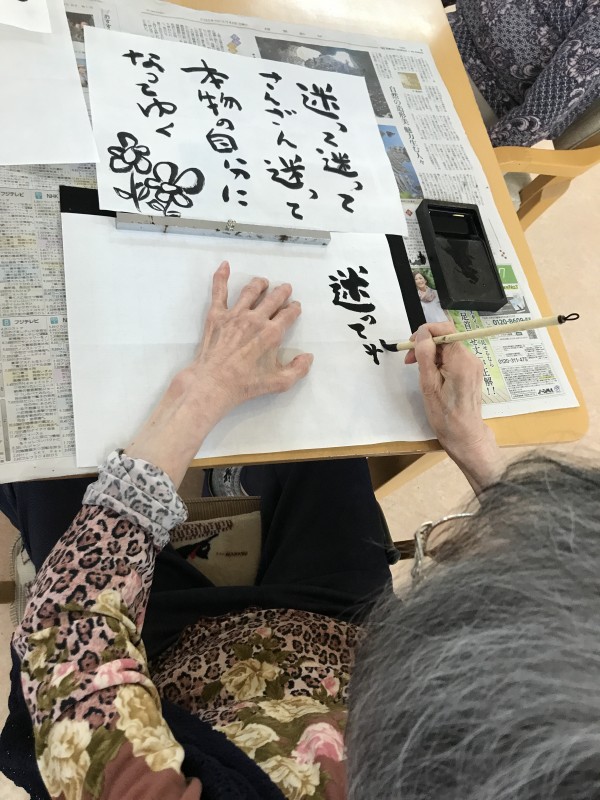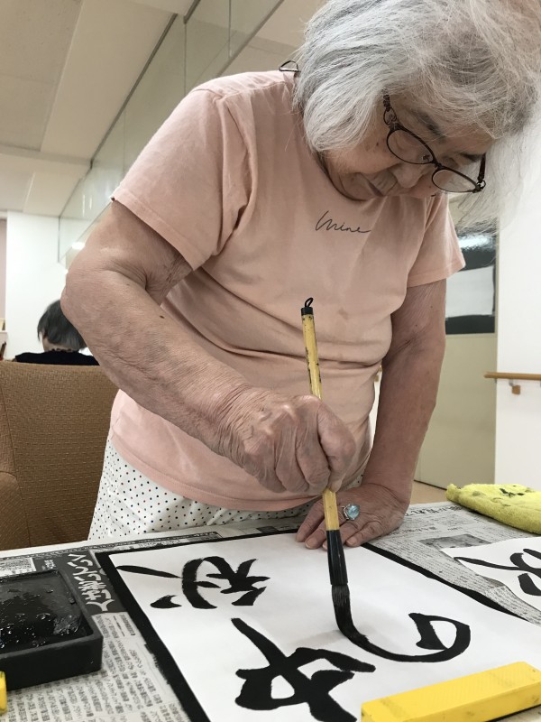 文字の大きさ、角度、半紙の使い方。