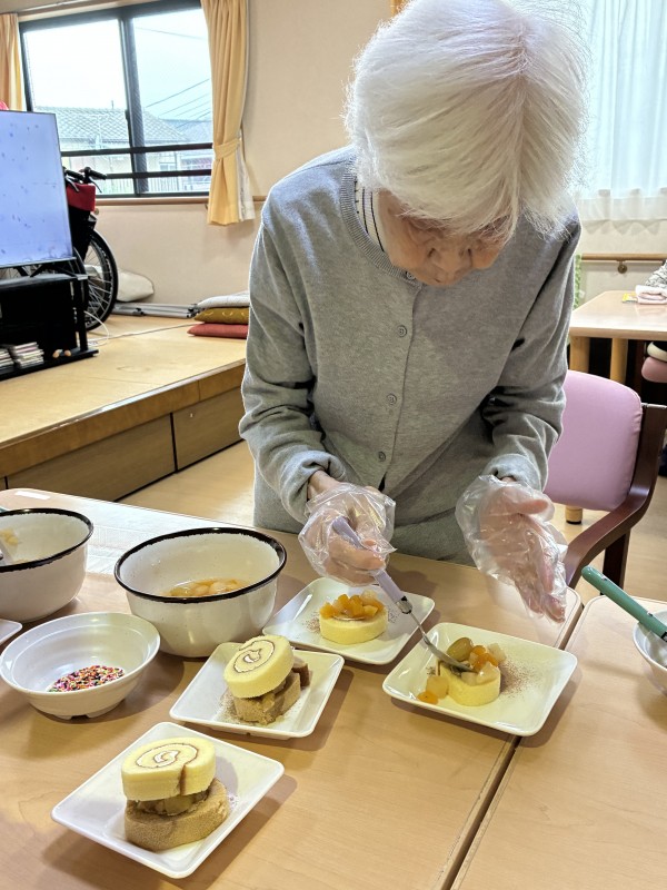 ロールケーキを土台にいろんなトッピングでデコレーションしました!