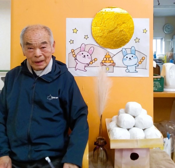 皆さんが作ってくれた、大きなお月見団子と一緒にパシャリ(´_ゝ`)‼