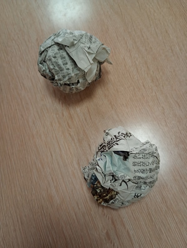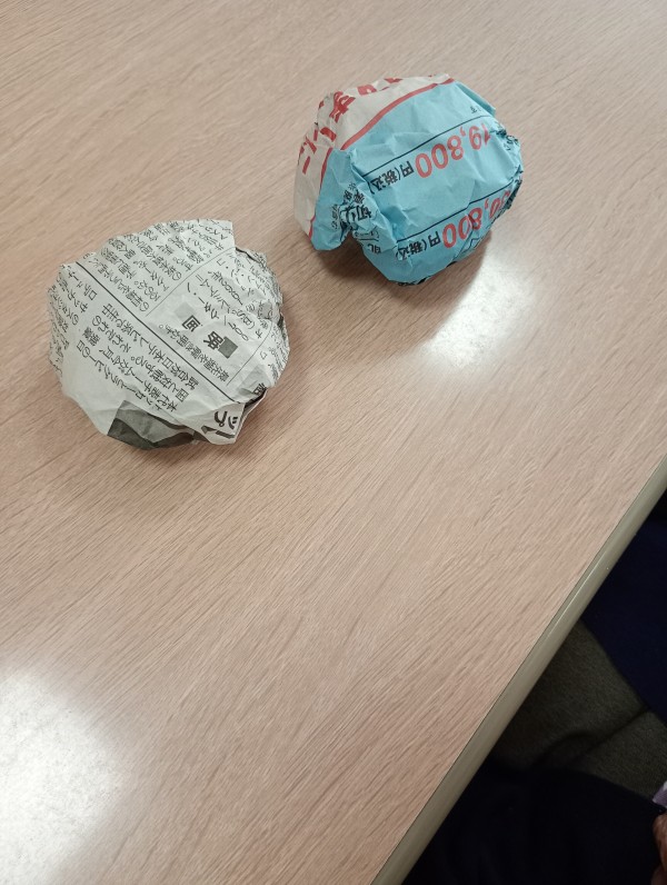 今回は、片手しか使わずにどれだけ新聞紙を丸くできるか!!をやってみました☆