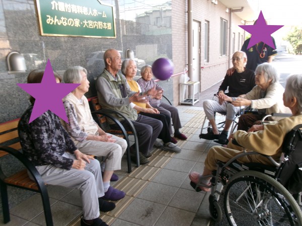 今日はお天気もよくご入居様と外に出てボール遊びをしました。