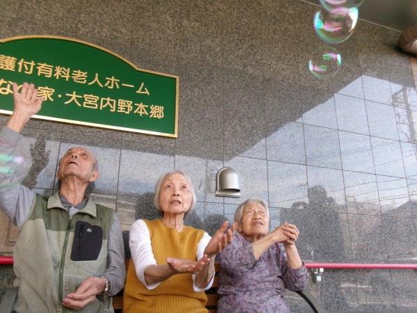 風に乗って飛んでいくシャボン玉を、手を伸ばして追いかける姿も見られ、とても和やかな時間となりました。