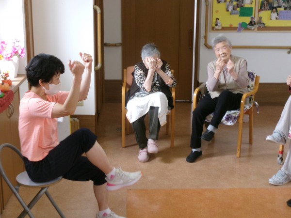 今日は、本部より運動指導員が来て体操を