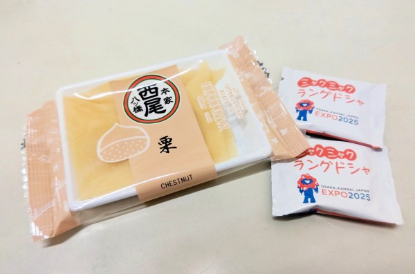 お茶菓子には栗の生八つ橋とミャクミャクのラングドシャをご用意♪