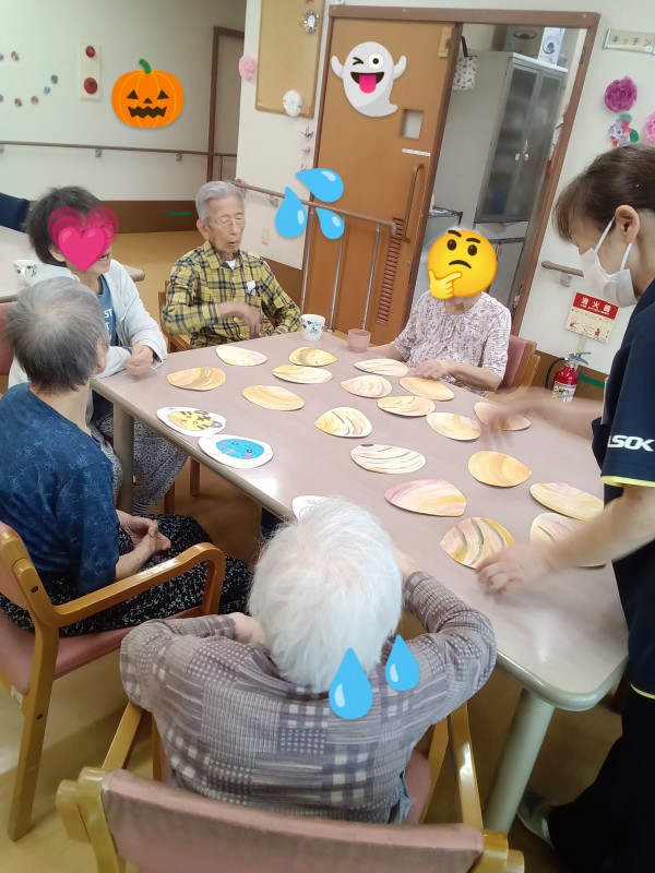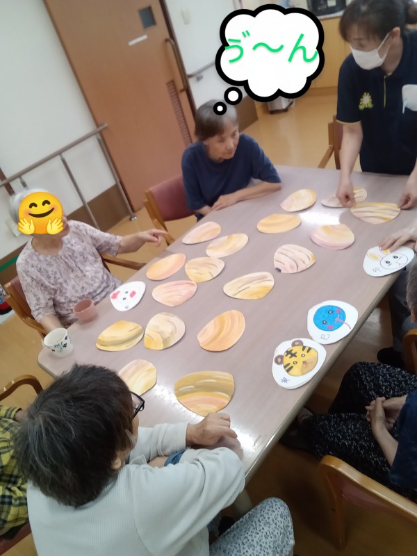 本日はおやつ後に貝合わせゲームを行いました(^^♪貝合わせゲームとは?簡単に説明すると平安時代のカルタ遊びになります。現状ハマグリは無理なので貝の絵を書きアレンジしたものです。