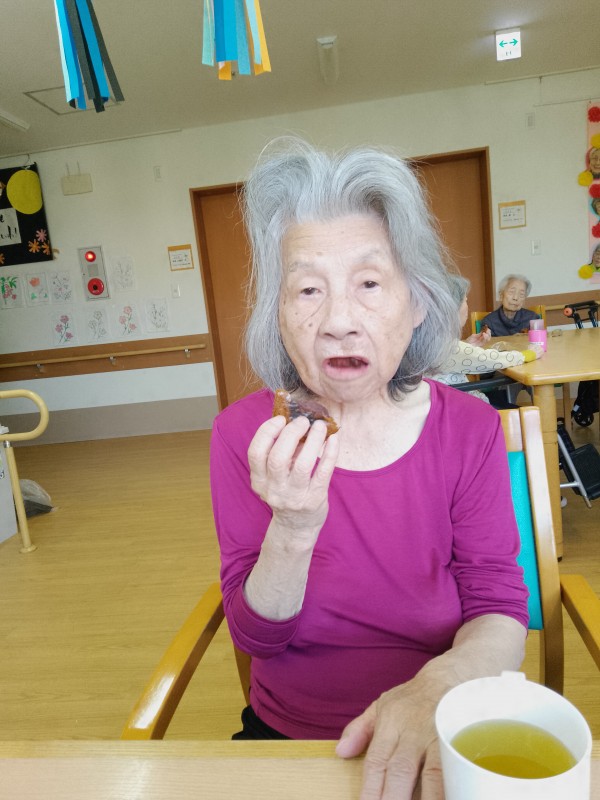 おやつは、お饅頭です。おいしいで~す(^^)/