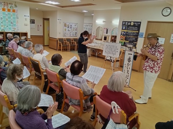 10月2日(木)にチューさんが来てくれ、ウクレレとハーモニカの演奏がありました♪