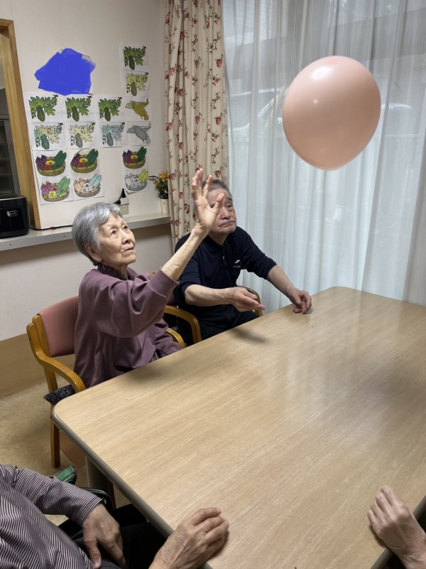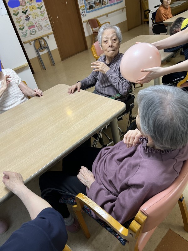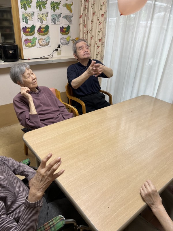 皆さんがんばって風船バレーのレクをしてくださいました。
