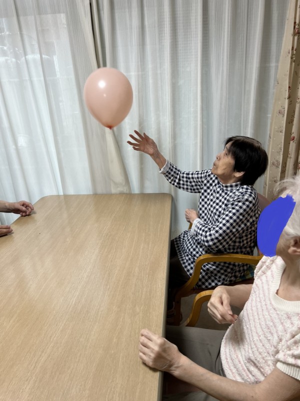 今回は1階の皆さんによる風船バレーのレクのご様子をご覧ください。