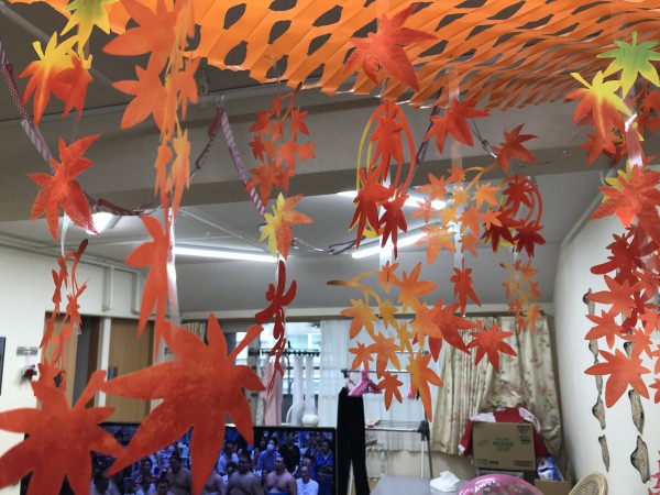 壁だけではなく、ホール内にも秋っぽさを飾ってみたのでした ^^v