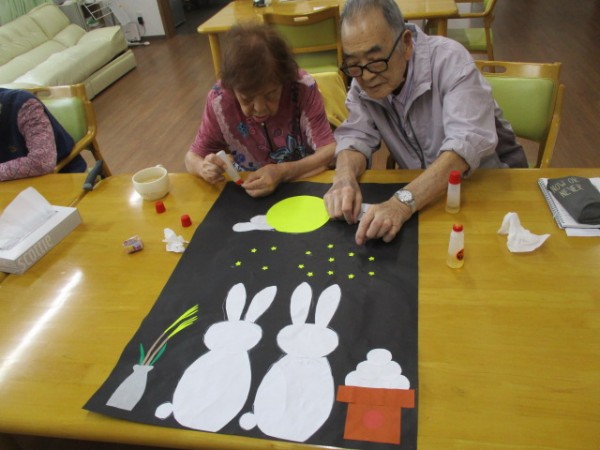 今日は2階でお月見の貼り絵を行いました。 そのご様子をお知らせいたします!!