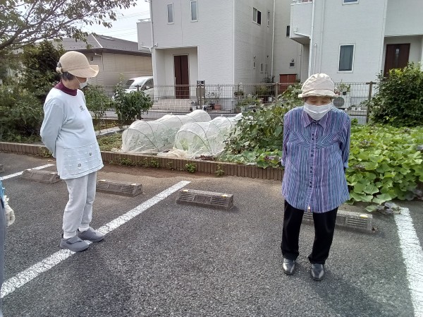 散歩と外気浴の途中で菜園の様子を見ていただきました。