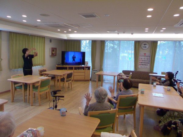 ホールにて体操を行っています!