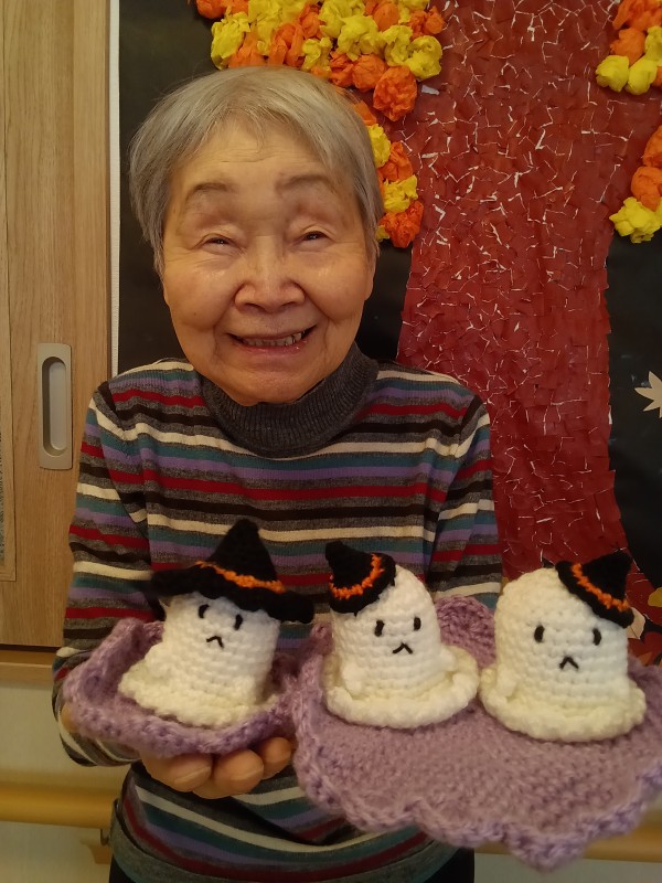 ハロウィンに向けて魔女の帽子を被ったオバケを