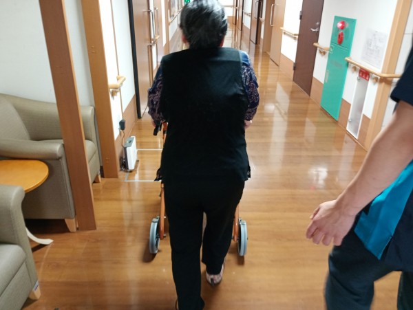 歩行器を利用しゆっくりと歩かれています