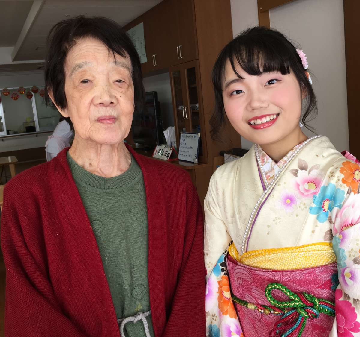 利用者様のお孫さんが成人式の式典に出席する前に晴れ着姿で遊びにきてくれたのです。