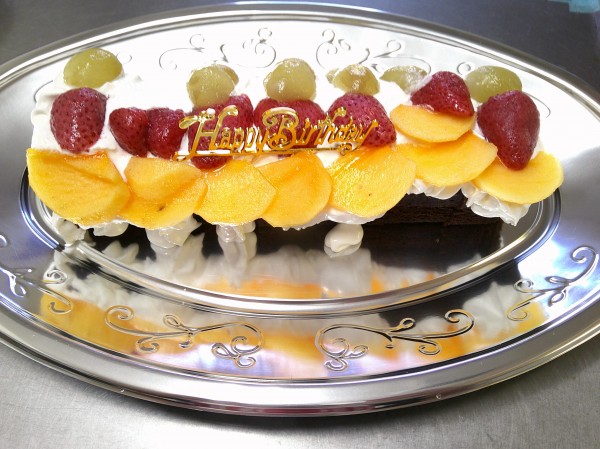 柿やシャインマスカットやイチゴがのっている生クリーム&チョコケーキです♥♥
