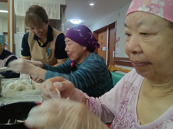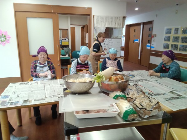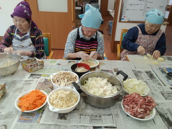 さすがさすが!!ホームに来る前は、皆さんご家庭の主婦だったんですから、豚汁作りなんて、オチャノコサイサイです(*^^)v