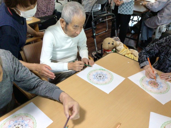 今回は前回上がっている【オレンジカフェ 曼茶羅アート!!】の頑張って作っているお写真がありましたので紹介していきたいと思います!