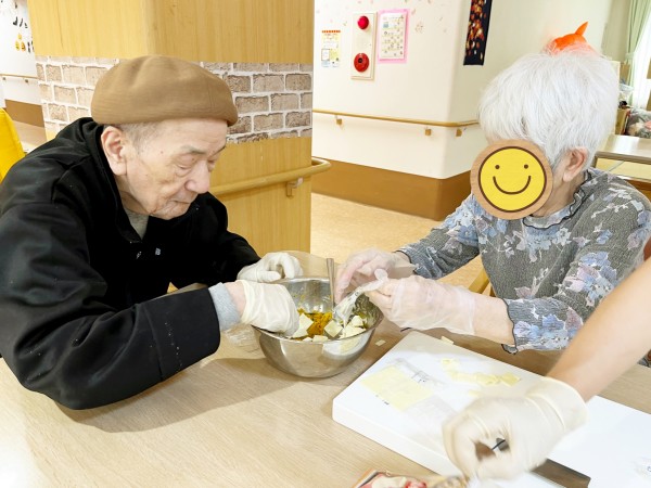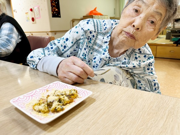 グループホームみんなの家大宮三橋 3階10月おやつレク~皮も美味しいから捨てません♪エコで美味しい『皮付きカボチャ餅』