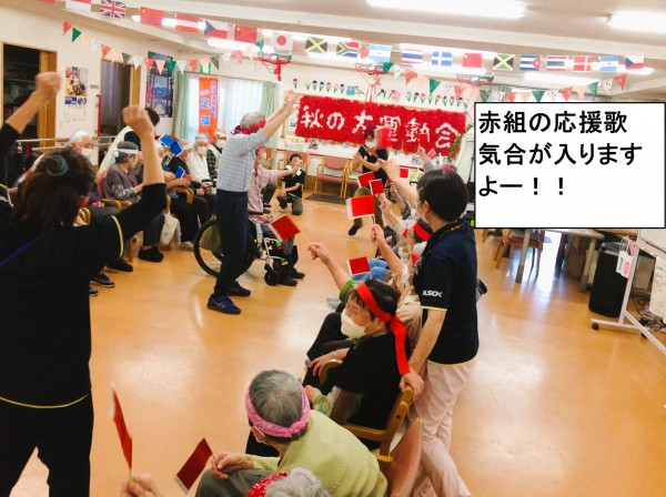 赤組・白組と別れて秋の大運動会