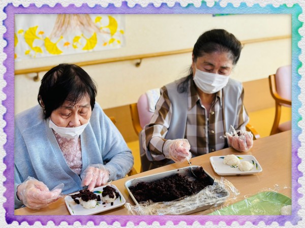 皆様にきな粉・ゴマ・あんこをまぶすのをお手伝いして頂きました。
